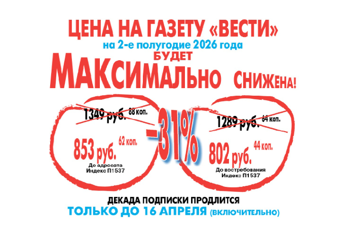 ЦЕНА НА ГАЗЕТУ «ВЕСТИ»