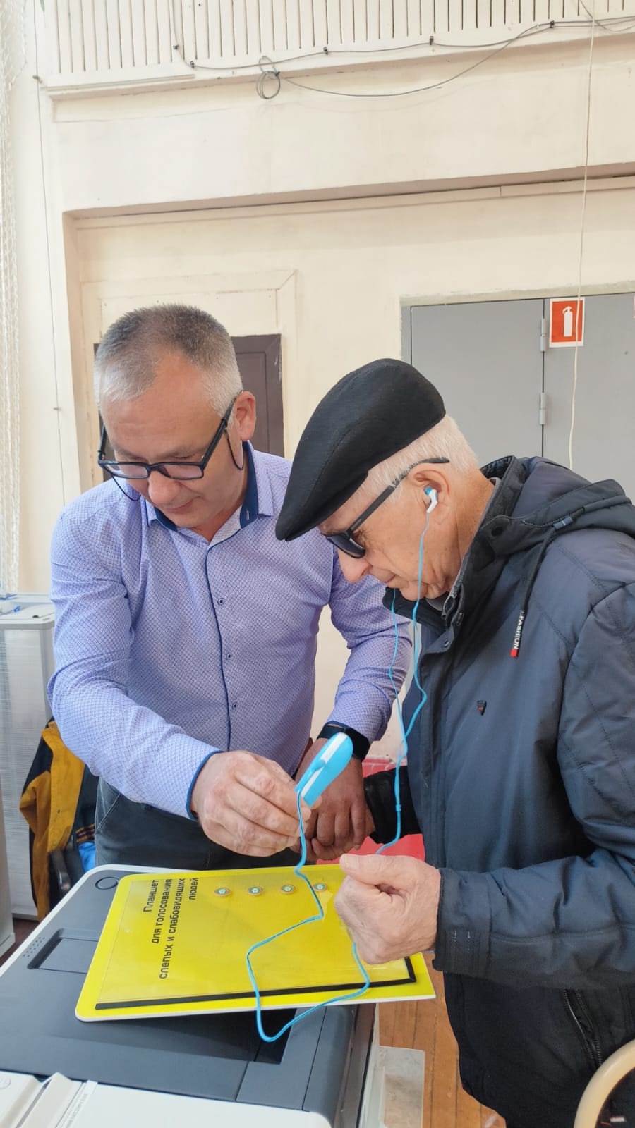 Особое внимание было уделено созданию безбарьерной среды для избирателей с ограниченными возможностями здоровья, которые, несмотря на опцию голосования на дому, демонстрировали высокую гражданскую ответственность и активность. Так, на избирательном участке № 380 в Гатчине для слабовидящих избирателей установили специальный аппарат – тифлокомментатор. Речь идет о специальном трафарете, который накладывается на бюллетень. Рядом с прорезями для отметки расположены медиаметки. При контакте с ними специального маркера устройство через наушники озвучивает информацию о кандидате. Это позволило людям с нарушениями зрения сделать тайно осознанный и самостоятельный выбор.