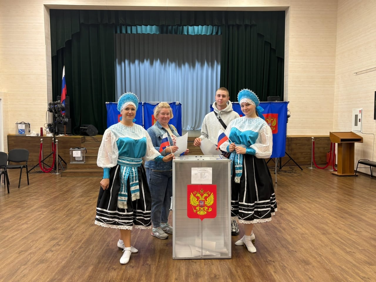 Торжественную обстановку создавали для избирателей на участке в Большеколпанском поселении Гатчинского округа участницы хореографического ансамбля «Сюрприз».