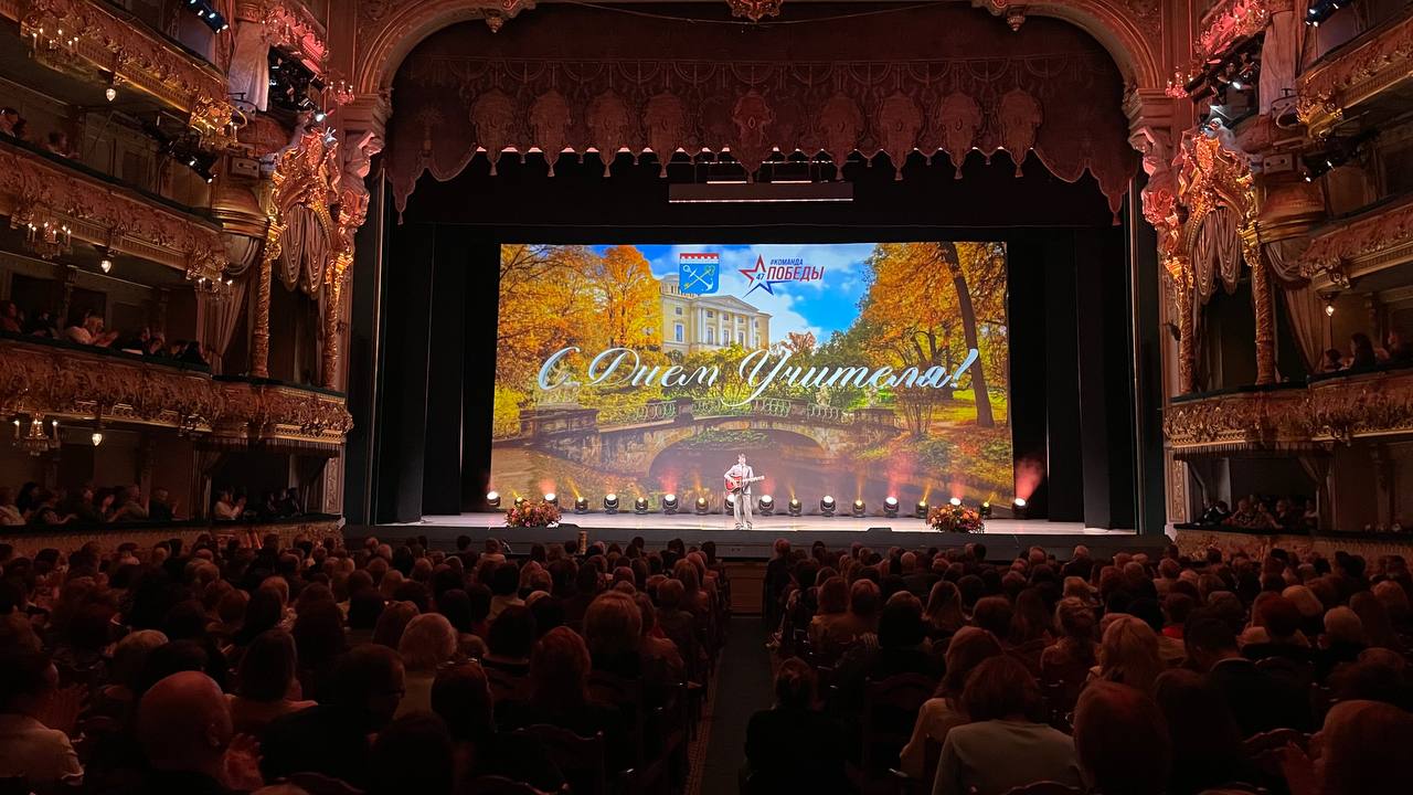 Также 3 октября, в преддверии Международного дня учителя, выдающихся работников сферы образования Ленинградской области поздравляли в Мариинском театре.