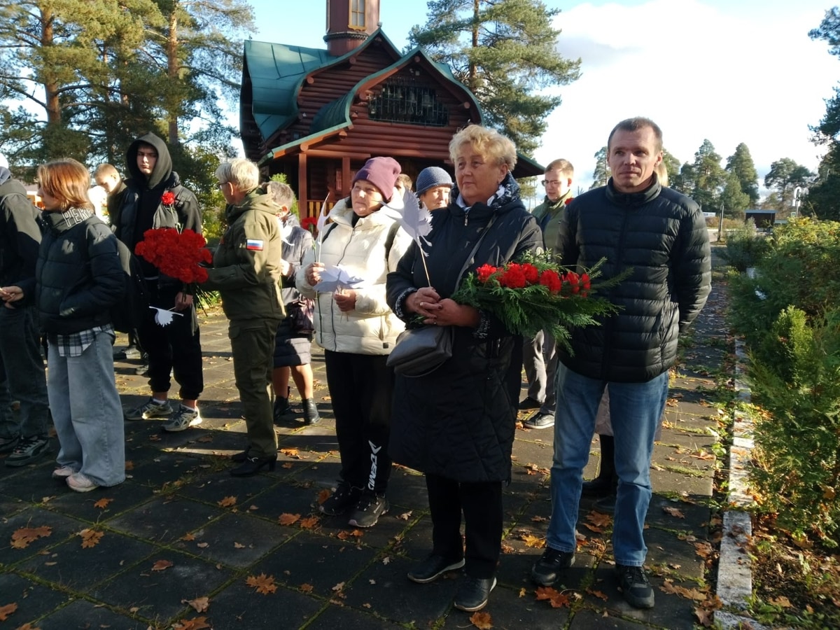 В траурной церемонии, чтобы отдать дань памяти павшим, приняли участие глава администрации Мельниковского сельского поселения Бахарев Андрей, консультант комитета по молодежной политике Ленинградской области Герман Сакс, специалист отдела по физической культуре, спорту и молодёжной политике администрации Приозерского района Игорь Шевцов. Особое место среди собравшихся заняли члены поискового отряда «Северный рубеж», школьники и неравнодушные местные жители, для которых сохранение исторической памяти – священный долг. Воинские почести павшим героям были отданы при содействии военнослужащих в/ч 12086.
