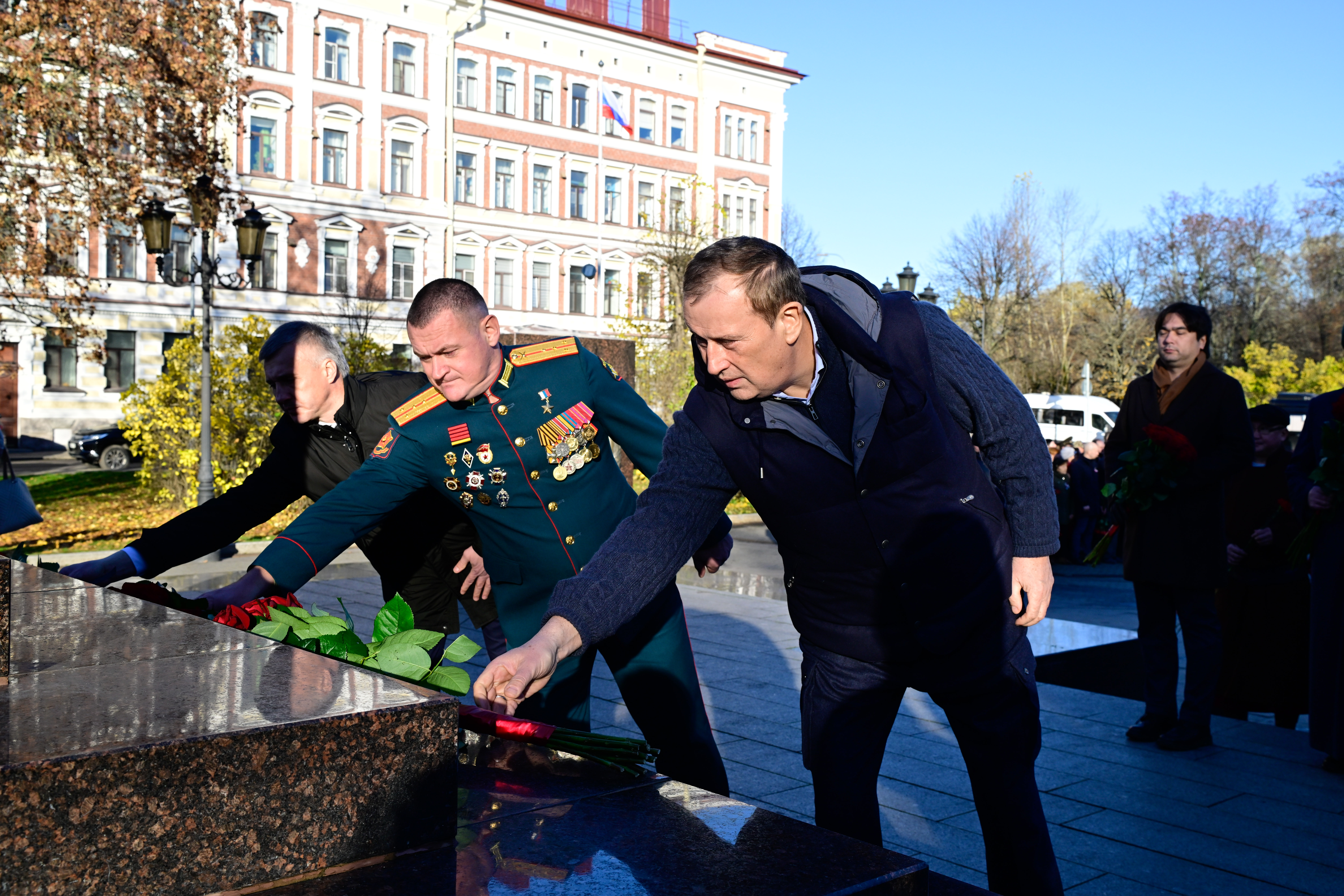 День начался с торжественной церемонии возложения цветов к стеле «Город воинской славы» на площади Выборгских Полков. Вместе с губернатором в церемонии участвовали Герой России Валерий Енин, зампред правительства области Владимир Цой, председатель комитета по МСУ Ленобласти Андрей Клементьев, председатель областного комитета общественных коммуникаций Екатерина Путронен, председатель Общественной палаты региона Александр Габитов, глава администрации Выборгского района Валерий Савинов, а также представители традиционных конфессий, общественных и молодежных организаций, патриотических движений, местные жители и гости города.