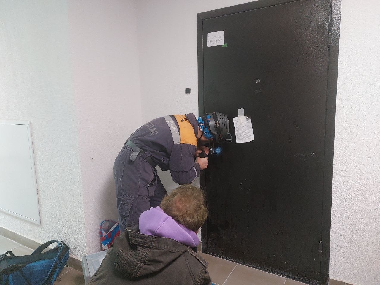Желая поднять кошку целиком, а не по частям, спасатели начали разрабатывать иную тактику. Пробовать петелькой рискованно. Спуститься из окна и вскрыть обшивку снаружи – сопряжено с рисками не только для животного, но и для спасателя (могут упасть). Третий вариант показался наиболее оптимистичным: постучаться к соседям с 8-го этажа. Но, увы, нужная квартира была еще не сдана застройщиком.