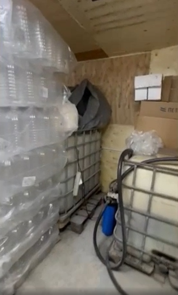 Как оказалось, подпольное производство злоумышленники организовали в двух гаражах: на Кубинской и Краснопутиловской улицах. Там оперативники обнаружили и изъяли 257 канистр с суррогатом общим объемом 1285 литров, а также многочисленные пустые пластиковые канистры и самодельное оборудование для смешивания спирта с водой.